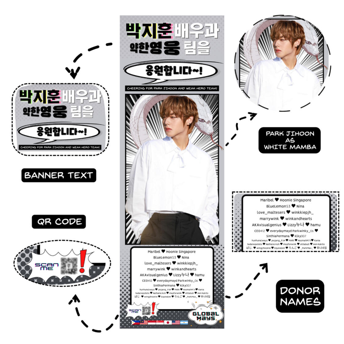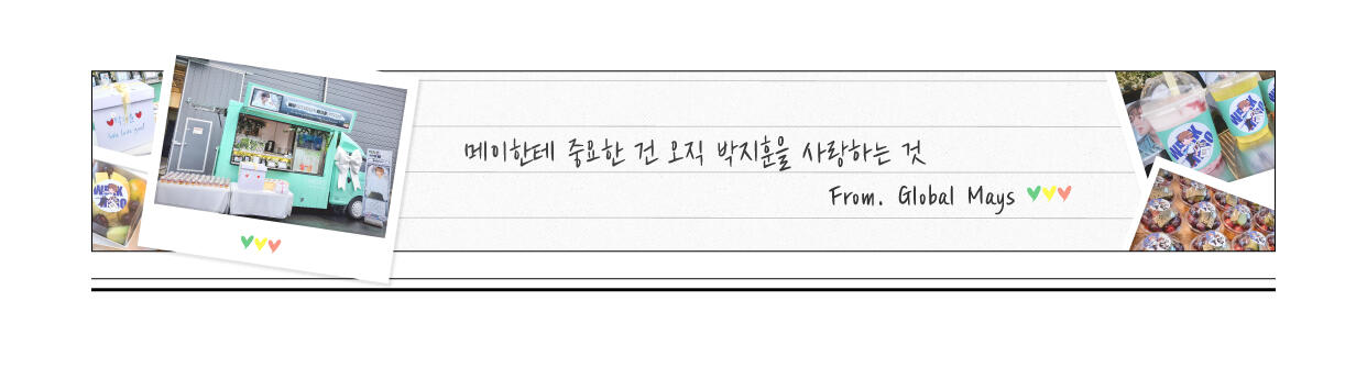今回のサポートで、パクジフンさんが世界中で愛されているということを再確認して、そしてGLOBAL MAYSからの心のこもったメッセージやプレゼントで元気をもらっていることを願って。