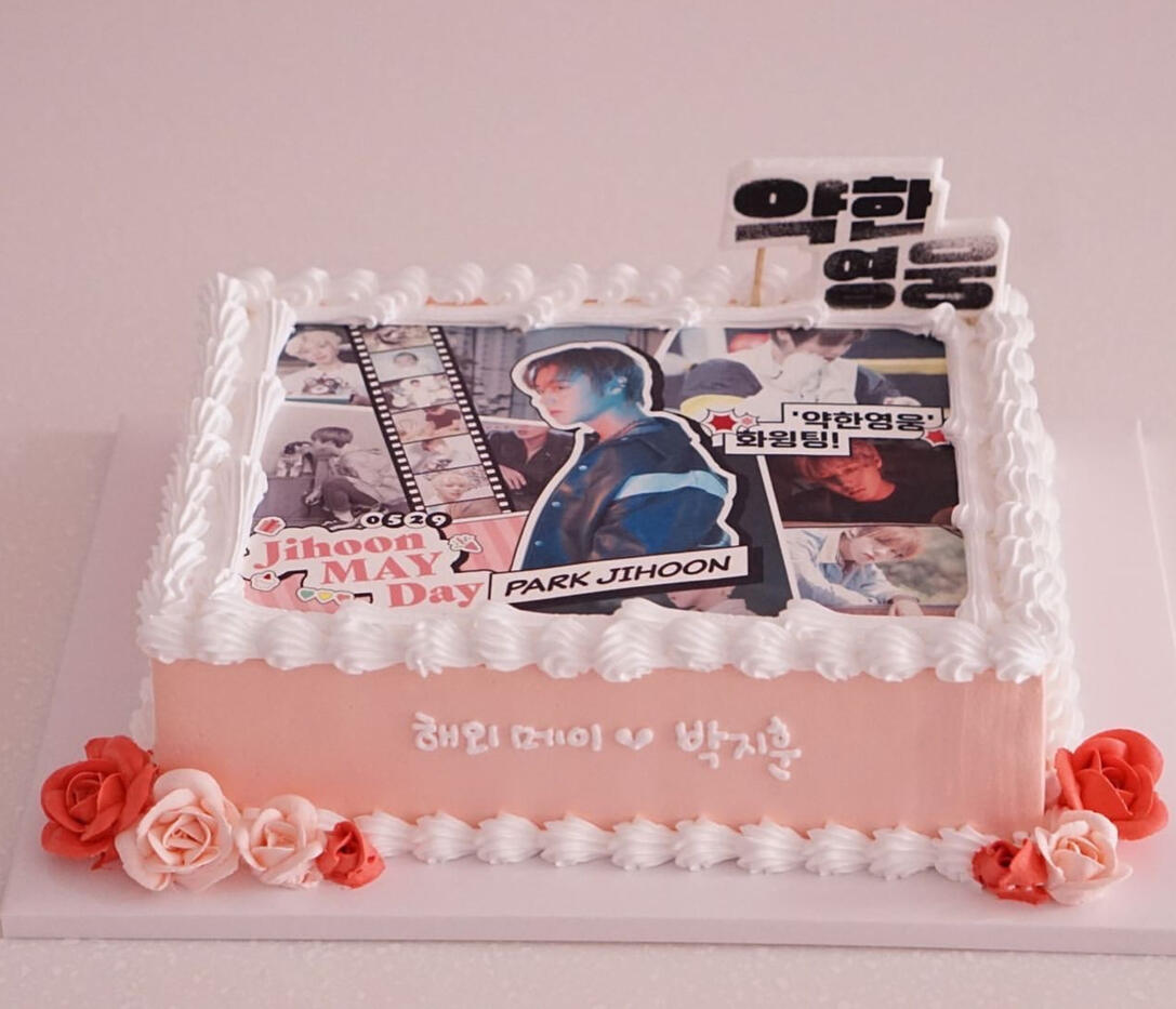 11. バースデードラマケーキ5月にお送りした誕生日兼ドラマサポートケーキです。一度、サポート許可が5月中になりそうとご連絡いただいていたので、5月の誕生日のお祝いとドラマサポートを兼ねて、オーダーメイドケーキを注文しました。ただ、5月は撮影の都合により許可が難しいようだったので、ドラマサポートより早くケーキを送ることになり、お送りしました。ケーキのデザインも他同様にコミック風のデザインで、カムバックやドラマの写真から今回の役に雰囲気が近そうなものを含めました。また、誕生日ケーキも兼ねているので、ジフンさんの幼い頃の写真やマックスくんも含め、これまで過ごした楽しい日々を思い出しつつ、誕生日のお祝いになっていればと思います。こちらの誕生日兼ドラマサポートケーキは、所属事務所経由でジフンさんに無事、お渡しできたそうです。また、お届け日は(なまものなので)すぐにお渡しできる日ということで、5月27日に事務所に届けられました。